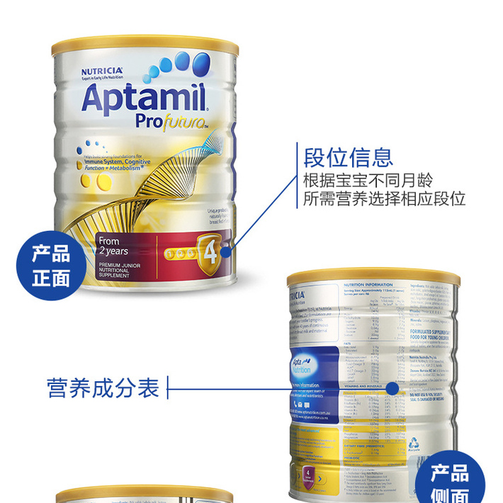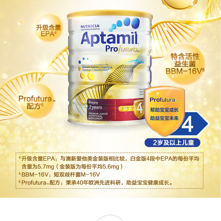 Aptamil 爱他美白金版婴儿奶粉4段(2岁以上)Profutura 900克